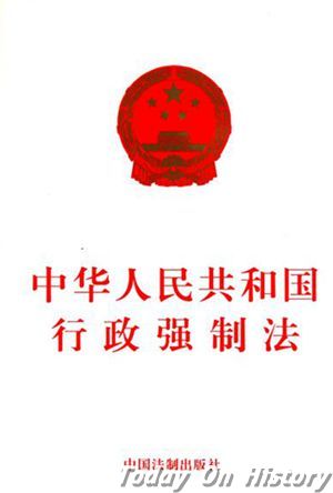 2012年1月1日,《中华人民共和国行政强制法》实施。中华人民共和国行政强制法是为了规范行政强制的设定和实施,保障和监督行政机关依法履行职责,维护公共利益和社会秩序,保护公民、法人和其他组织的合法权益,