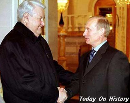 叶利钦与普京2000年1月1日,叶利钦总统通过俄罗斯最大的『俄罗斯公共电视台』向俄罗斯人民发表新年讲话说,他决定辞去总统职务,今后三个月由普京总理暂时行使总统职权,三个月后举行总统选举。叶利钦说,今