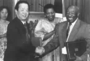 中非正式签署关于建立外交关系的联合公报1998年1月1日,我国与南非建立外交关系。南非,位于非洲大陆最南端,有『彩虹之国』美称。面积122.1万多平方公里,人口4360万人。其中黑人3000多万,白人510万,亚洲人99万