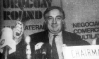 总干事萨瑟兰在日内瓦的国际会议中心敲闭会槌声1995年1月1日,世界贸易组织(WorldTradeWTO),以取代成立于1947年的关贸总协定(GATT)。『关贸总协定』,即关税及贸易是协定,它是一项关于关税及贸易政策的多边