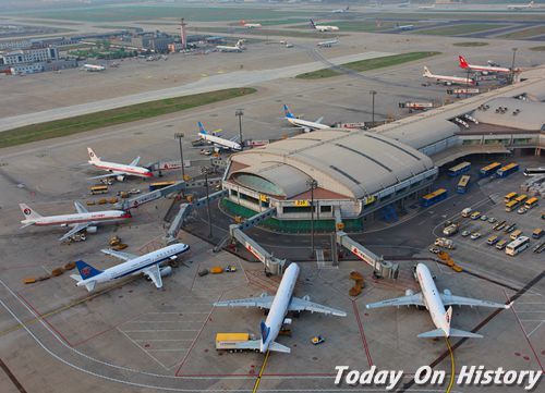 首都国际机场1980年1月1日,首都国际机场面积6万平方米的一号航站楼及停机坪、楼前停车场等配套工程建成并正式投入使用。一号航站楼按照每日起降飞机60架次、高峰小时旅客吞吐量1500人次进行设计。扩建完成