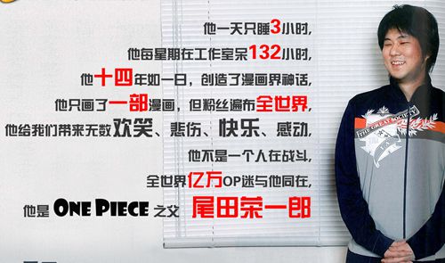 尾田荣一郎日本漫画家尾田荣一郎,1975年1月1日出生。故乡在日本熊本县。自1997年起,在周刊漫画《少年JUMP》第34期上开始连载代表作《ONEPIECE》。现在已被腾讯动漫收购了大陆的漫画网络版权,中文翻译是《海