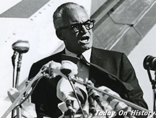 BarryMorrisGoldwater1909年1月1日,美国政治家贝利·高华德出生。贝利·高华德(BarryMorrisGoldwater,1909年1月1日-1998年5月29日)是美国政治家,共和党人,于1953年-1965年、1969年-198