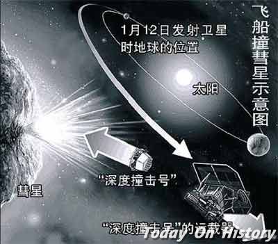 示意图2005年1月12日,美国国家航空航天局用于探测坦普尔1号彗星内部结构的深度撞击号在肯尼迪航天中心发射成功。深度撞击号(英语:DeepImpact)是美国国家航空航天局的彗星探测器,设计用于研究坦普尔1号
