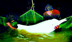 1980年1月12日,湖南岳阳陵矶渔业生产队在长江中下游的洞庭湖口捕获了一条活的白鳍豚,身长1.5米,重65公斤,这是我国当时捕获的第一条活体白鳍豚,也是世界上第一条活体白鳍豚。在长江里大约生活了2500万年的白鳍豚