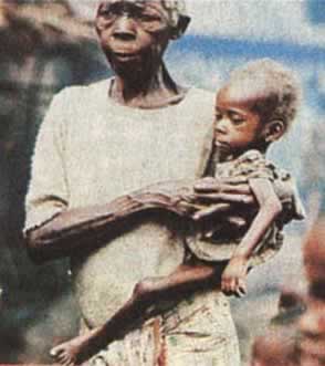 饥饿的妇女和儿童1970年1月12日,尼日利亚历时31个月的内战结束。比夫拉分裂主义者在其领袖沃杜梅古-奥朱古将军出逃以后宣告投降。内战中有200万人无家可归,其中包括整整一代伊博族的儿童。内战期间,国际社会曾每