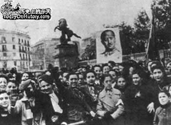 巴塞罗那市民欢迎佛朗哥的部队1939年1月26日,佛朗哥占领巴塞罗那,政府逃亡,标志着西班牙独裁统治正式确立。欢呼的人群欢迎佛朗哥将军的军队胜利进入巴塞罗那。在过去的3天里,皇家军队已经撤离该城,佛朗哥国民