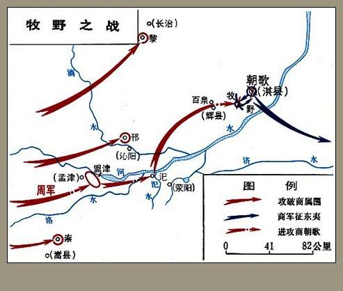 牧野之战(年代说法不一,从公元前1130年到公元前1018年都有)又称『武王伐纣』,是周武王联军与商朝军队在牧野(今河南省淇县南、卫河以北,新乡市附近)进行的决战。由于帝辛(商纣王)先征西北的黎,后平东南夷,虽取得