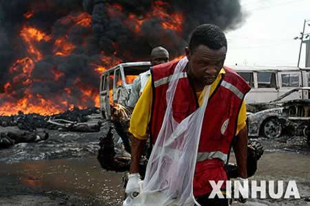 在2002年1月27日尼日利亚拉各斯的兵营爆炸事件中被毁的房屋。2002年1月29日尼日利亚国家电视台发表尼总统奥巴桑乔的一份声明,宣布拉各斯伊科嘉兵营27日发生的大爆炸为『国难』,全国各地下半旗向死难者致哀。奥巴桑