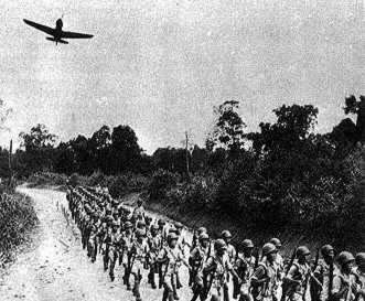 驻印军在空军支援下向缅北挺进1945年1月27日,中国远征军和中国驻印军在缅甸芒友会师,打通了中印缅公路。1943年8月,魁北克国际会议决定向缅北日军发动进攻,军事行动由中国驻印军和中国远征军承担。驻印军总指挥史