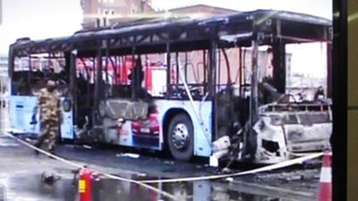现场图片2016年1月5日7时许,银川市公交公司301路由贺兰天骏花园开往银川火车站的公交车行驶到109国道金盛国际家居广场门口,突然发生火灾。当时车上有多人被困。车上受伤31人己送往医院救治。7:13分消防部