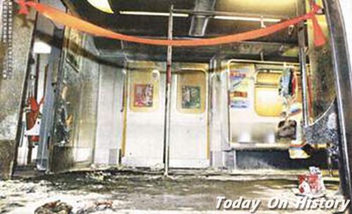 车厢纵火案现场2004年1月5日,香港地铁发生通车以来首宗车厢纵火案,14人不适送院。六十八岁狂徒严金钟早前经审讯裁定一项纵火罪成,25日被判终身监禁,但定最低刑期为囚禁十年。香港首宗地铁纵火案被告严金