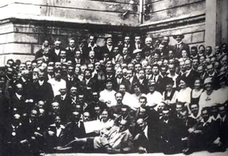 1919年1月5日,法西斯党——德国工人党(1920年改称德国国家社会主义工人党)在慕尼黑成立。希特勒1919年9月加入德国工人党(后改名为德国国家社会主义工人党),从事宣传工作。图为希特勒以慕尼黑代表的