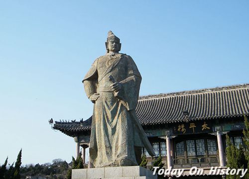 戚继光塑像1588年1月5日,中国明代民族英雄、抗倭名将戚继光逝世,享年60岁。戚继光(1528年11月12日-1588年1月5日),字元敬,号南塘,晚号孟诸,卒谥武毅。汉族,山东蓬莱人(一说祖籍安徽定远,生于山东