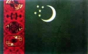 土库曼斯坦国旗土库曼斯坦,意为『突厥人的地区』,位于中亚西南部。面积48.81万平方公里。人口446万人(1995),其中(土库曼族占72%。官方语言为土库曼语,俄语的第二通用语。多数居民信仰伊斯兰教(逊尼派)。首