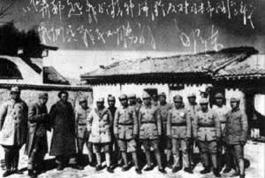 1937年毛泽东与宁都起义的参加者在延安合影1931年12月14日,国民党第二十六路军17000余人,在共产党员、参谋长赵博生和七十三旅旅长董振堂领导下,于江西宁都起义,参加了红军。这是第二次国内革命战争时期的一次重