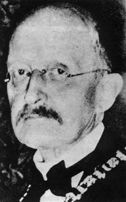 普朗克老年时的像片1900年,德国柏林大学教授普朗克首先提出了『量子论』。1906年12月14日,普朗克在柏林的物理学会上发表了题为《论正常光谱的能量分布定律的理论》的论文,提出了著名的普朗克公式,这一天被普遍地