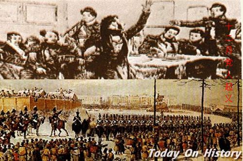 十二月党人起义1825年12月14日,俄国发生十二月党人起义。十二月党人决定利用这样一种特殊的形势,赶在皇位继承人尼古拉举行再宣誓继位的12月14日(公历12月26日)前发动军事行动,迫使新沙皇和枢密院宣布改