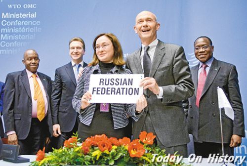 俄罗斯正式加入世贸组织2011年12月16日,俄罗斯正式加入WTO。世界贸易组织(WTO)于2011年12月16日在瑞士日内瓦召开第八次部长级会议,正式同意吸纳俄罗斯入世。俄罗斯由此结束长达18年的入世『马拉松』。