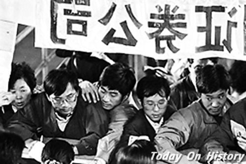 上海证券交易所正式开业1990年12月19日,上海证券交易所正式开业。1990年11月26日,经国务院授权,由中国人民银行批准建立的上海证券交易所正式成立,这是建国以来内地的第一家证券交易所。此前的中国人,只