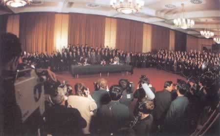 1984年12月19日《中英关于香港问题的联合声明》签署1984年12月19日,中英两国政府《关于香港问题的联合声明》在北京签署。英国同意于1997年归还香港1984年12月18日,应邀前来签署中英关于香港问题的联合声明并进行正
