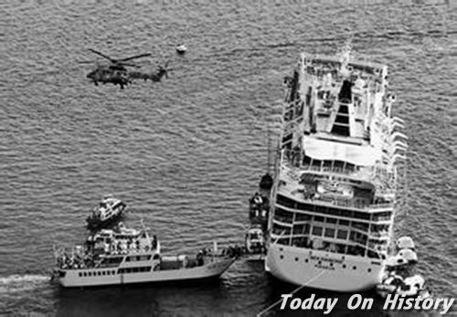希腊客轮1963年12月22日,希腊客轮『拉科尼亚』号在航行中突然起火。当时附近的船只和海军舰艇都赶去帮助灭火,但是没有成功。这艘船最后沉没在大西洋,150人因此丧生。