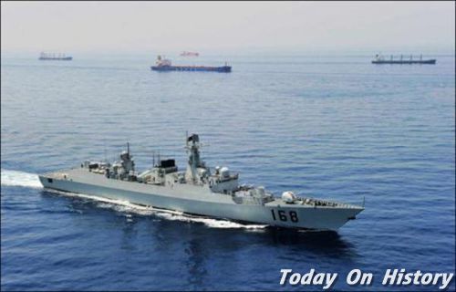 中国海军亚丁湾护航编队2008年12月26日,中国向亚丁湾派遣舰队,为经过该水域的船只护航。2008年12月26日,第一批护航编队从海南三亚军港起航。编队由武汉号导弹驱逐舰、海口号导弹驱逐舰和微山湖号综合补给