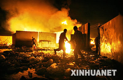 2007年12月26日,美军士兵在伊拉克拜伊吉镇的一个小型美军军营灭火。当日,这个美军军营内的油罐车遭迫击炮袭击后燃起大火。目前还没有人员伤亡的消息。新华社发1月10日,美国总统布什宣布调整对伊拉克政策,