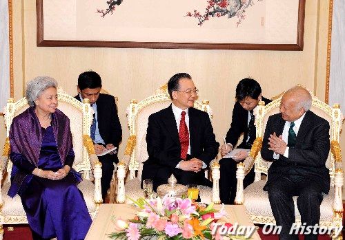 温家宝在北京看望柬埔寨太皇太后西哈努克夫妇2008年02月10日,温家宝在北京看望柬埔寨太皇太后西哈努克夫妇。02月10日,国务院总理温家宝在北京看望了柬埔寨太皇诺罗敦·西哈努克和太后诺罗敦&mid