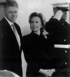 克林顿和夫人希拉里1999年2月12日,美国会参议院在对克林顿总统弹劾案的最终表决中,以45票赞成55票反对和50票赞成50票反对的表决结果,否决美众议院1998年通过的指挥克林顿在与前白宫实习生莱温斯基关系问题上『作