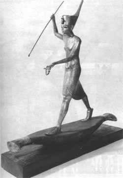 国王的镀金木像,他手执一柄鱼叉站在木筏上1924年2月12日,当图特安哈门国王的金色木乃伊棺椁被揭开时,3300年的沉默被透不过气的惊愕打破了。霍华德-卡特和他的一组埃及专家为了这一时刻的到来辛苦地工作了几个月。