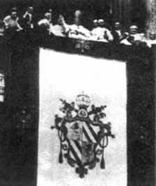 庇护十一世在罗马的加冕仪式1922年2月12日,米兰教区大主教红衣主教阿希尔-拉蒂被选为教皇,将以庇护十一世之名开始统治。阿希尔·拉蒂生于米兰附近小镇德西奥的一个中产阶级家庭。65岁的新教皇欲继承其前任本