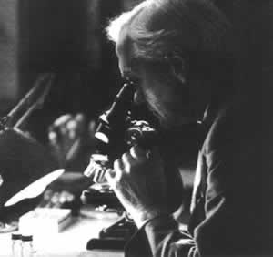 弗莱明在做试验1928年2月13日,弗莱明发现了青霉素。为此,他和英国病理学家弗洛里以及生物化学家钱恩共同获得1945年诺贝尔生理学和医学奖。1881年,亚历山大-弗莱明生于苏格兰。16岁去伦敦,曾在轮船运输事务所