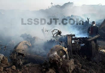在伊朗首都德黑兰以东650公里的出事地点,一名救援人员站在火车残骸旁2004年2月18日,伊朗一列装有燃料和化学物品的列车在行驶到距离首都德黑兰以东650公里处的呼罗珊省海亚姆车站时发生爆炸,5个村庄被摧毁。爆炸共