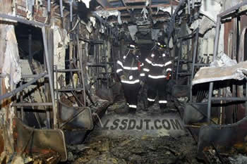 两名救援人员在韩国大邱市一辆被烧毁的地铁列车中巡视2003年2月18日韩国大邱市地铁发生特大火灾。火灾导致198人死亡,147人受伤。8月6日,韩国大邱地方法院对大邱地铁纵火案的9名被告人进行公开宣判,纵火犯56岁的