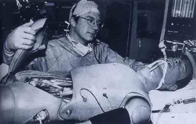 英国医生在给电脑『模拟病人』作检查1997年2月18日,英国发明新一代电脑『模拟病人』英国科学家最近推出新一代电脑『模拟病人』、,其外形及对刺激的反应几乎与真人相仿。电脑『模似病人』有脉动、心跳,还会呼吸、
