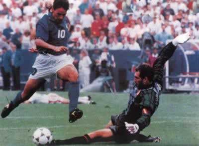 巴乔在94年世界杯足球比赛中国籍:意大利身高:1.74米体重:74公斤现所属俱乐部:布雷西亚曾效力俱乐部:AC米兰维琴察国际米兰佛罗伦萨尤文图斯博洛尼亚1967年2月18日出生于意大利南方城市维琴察省的小阵卡
