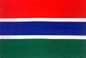 冈比亚国旗冈比亚共和国位于非洲大陆最西部,面积10367平方公里,东西长三百多公里,南北宽22—48公里,国土形状似中国古时的玉如意。由于它东、南、北三面被塞内加尔所怀抱,西临大西洋,被人们称为『国中之国