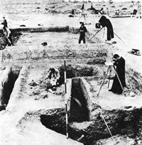殷墟发掘现场(1930)殷墟是我国奴隶社会商朝后期的都城遗址,位于河南省安阳市区西北小屯村一带,商代从盘庚到帝辛(纣),在此建都达273年,是中国历史上可以肯定确切位置的最早的都城。距今已有3300多年历史。189