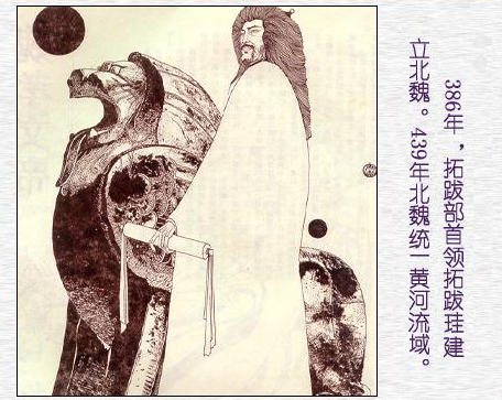 拓跋珪(371-409),鲜卑族拓跋部首领。北魏的建立者。即魏道武帝。先世曾建立代国,为前秦符坚所灭。淝水之战后,他乘机复国。386年2月20日(东晋大元十一年正月初六日,距今已{sys:(year(now)-386)}年),拓跋珪