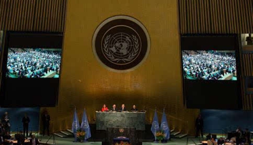 签署协议2016年4月22日,在美国纽约联合国总部,联合国秘书长潘基文(中)在《巴黎协定》高级别签署仪式开幕式上讲话。165国于纽约签署《巴黎协定》据外媒报道,超过165个国家的代表于当地时间22日在纽