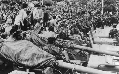 一师伞兵突然在4月22日包围了阿尔及尔政府大厦1961年4月22日,法国秘密军在阿尔及利亚叛乱。1月,戴高乐就阿尔及利亚的未来举行公民表决,法国和阿尔及利亚的人民以压倒多数投票赞成就自决举行谈判,阿尔及利亚战争