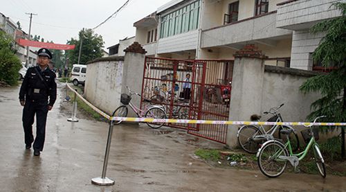 该幼儿园被警戒线围住2010年5月12日8时左右,陕西省南郑县圣水镇林场村幼儿园(民营)发生一起凶杀案。犯罪嫌疑人吴焕明持菜刀闯入该村幼儿园,致使7名幼儿当场死亡,20多人受伤,死亡的7名儿童为5男2女,2