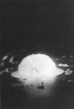 埃尼威托克岛上的火球1951年5月12日,美国政府报道,在太平洋中部进行的原子武器试验使氢弹研制工作有了明显进展。在略去了这些试验全部细节的声明中,原子能委员会和国防部说:『已经获得了预想不到的进展。洛杉矶