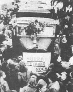 从柏林开来的第一辆汽车到达了汉诺威1949年5月12日早晨,柏林城爆发出阵阵欢呼声,因为一年之内第一次在午夜后灯火依旧通明。在连接柏林和英国占领区的高速公路上往来往车辆隆隆驶过。那些极度疲惫的机场工作人员都