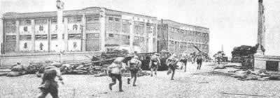 解放军战士冲过苏州河,向上海市区攻击1949年5月12日,解放军发动以消灭汤恩伯主力、解放大上海为目的的『上海战役』。自4月下旬解放军发动渡江战役以来,已歼灭了汤恩伯的大部分有生力量,其剩下的25个师约20万人退