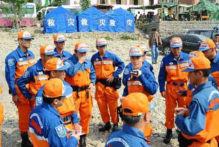 首批31名日本专业救援人员抵达距成都近400公里的青川县关庄镇。2008年5月16日,首批31名日本专业救援人员星夜兼程,已于16日9时45分抵达距成都近400公里的青川县关庄镇。这是日本政府第一次向中国提供人员进行前线救
