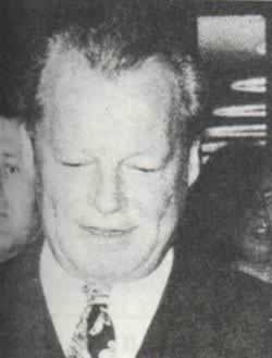 曾获1971年诺贝尔奖的勃兰特下台1974年5月16日,西德财政部长海尔穆特-施密特被议会任命为总理,接替了威利-勃兰特的职务。勃兰特因为被卷入一件大间谍丑闻,已于10天前辞职。他内阁中的一名高级官员冈特-纪尧姆被逮