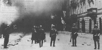 华沙犹太隔离区起火1943年5月16日,华沙犹太人区内的抵抗力量已经崩溃。高墙围筑的城区内犹太人已经绝迹,德军几乎抓不到任何俘虏。纳粹德国党卫军的尤尔金·兹特鲁将军说,他的军队杀死了56065名犹太人。并不
