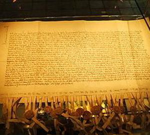 施特拉尔松德博物馆里的条约1370年5月24日,汉萨同盟与丹麦王国签署《施特拉尔松德条约》。结束了汉萨同盟与丹麦王国之间的战争,也标志着汉萨同盟到达其力量的巅峰。战争开始于1361年,当时丹麦国王瓦尔德
